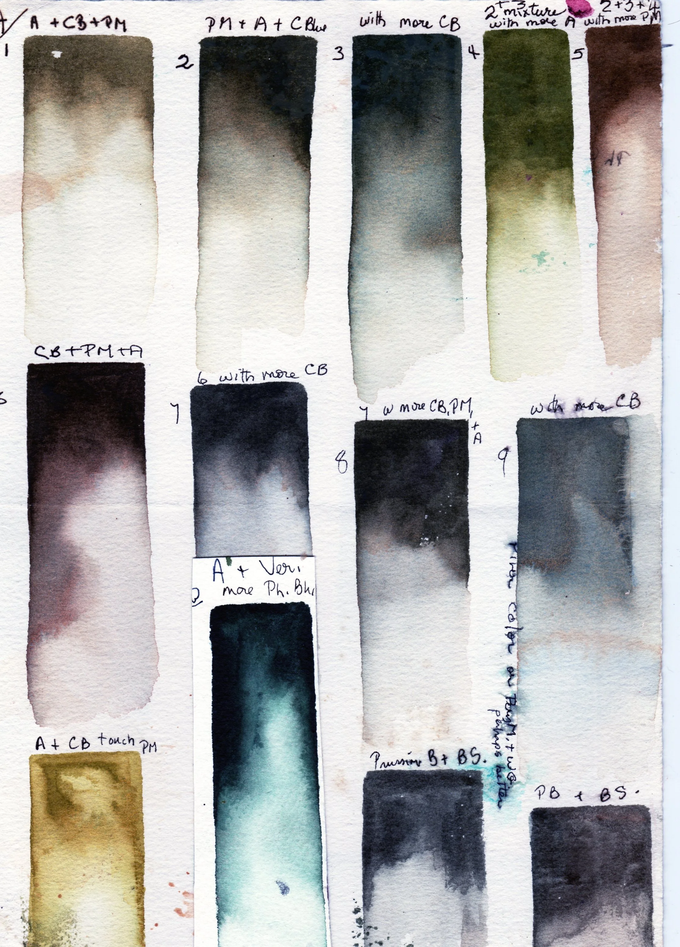 These are some of the greys you can achieve with that mixture of AY, Cobalt Blue and Permanent Magenta